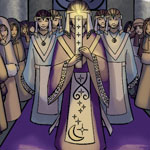 Each of the nations of Japethe have their own take on the Longest Night. In Albyn it's a time of whimsy and turning society topsy-turvy. Meanwhile, in Saronne (and therefore Aradie), it is a holy time because of Giavere's connection with the moon and celebrated with artistic performances and a vigil service at her temples. The highpoint of the celebration occurs at the midnight vigil, where the seers of Giavere reintroduce light into the darkened temple by means of a candle whose light is passed to candles held by all the worshippers.